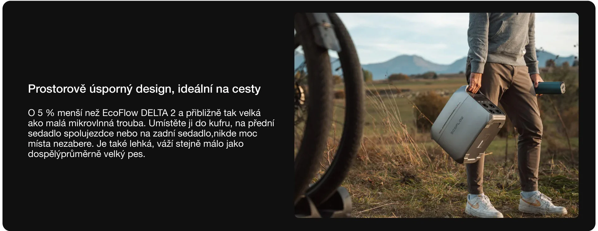 Stejný výkon, kompaktnější provedení. Dosáhněte kapacity 2 kWh s přídavnou baterií EcoFlow DELTA 3 Extra Battery (1 kWh), která je o 1/3 menší a lehčí než stanice DELTA 2.