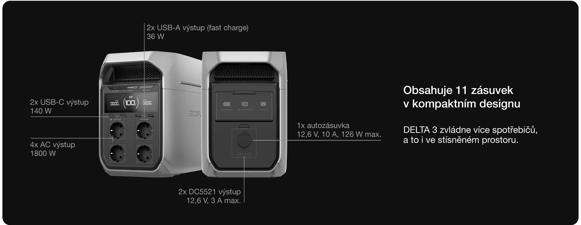 *Stanice EcoFlow DELTA řady 3 jsou kompatibilní s přídavnými bateriemi DELTA 3 Extra Battery, DELTA Pro 3 Extra Battery, DELTA 2 Extra Battery a DELTA 2 Max Extra Battery.